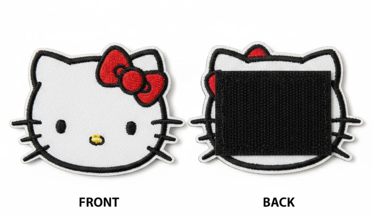 A velcro Hello Kitty patch is a patch that can stick and be removed easily. One side is on the patch and the other side goes on the fabric. This makes it easy to move the patch from one item to another. The fans like velcro patches because they can change the design anytime. A velcro is very handy if you want to put the patch on a jacket today and on a bag tomorrow.They are perfect for cosplay, uniforms or clothes that you use often. They stay in place well but can be taken off without damage.
