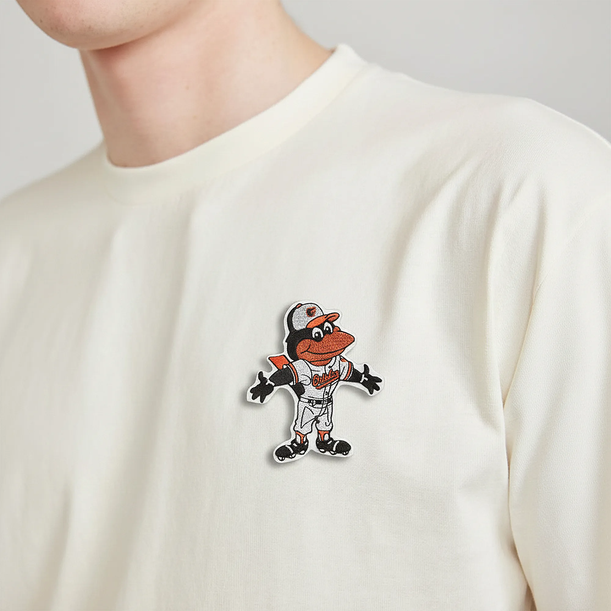 The addition of Velcro and sewing options gives you a choice to transfer it between outfits. Its upbeat design is sure to make people smile while loudly showing your team spirit. It is a must-have for collectors and a fun way for fans to express the energy of the Orioles mascot.