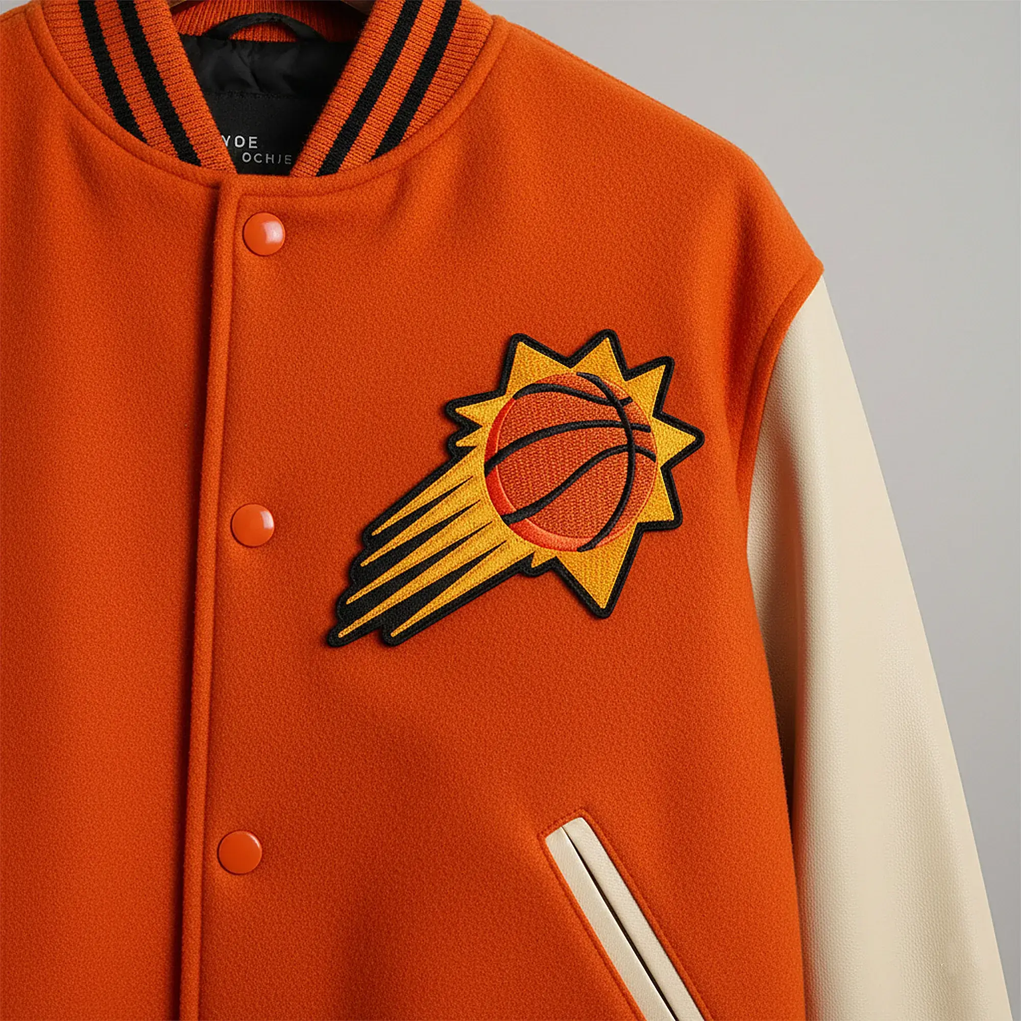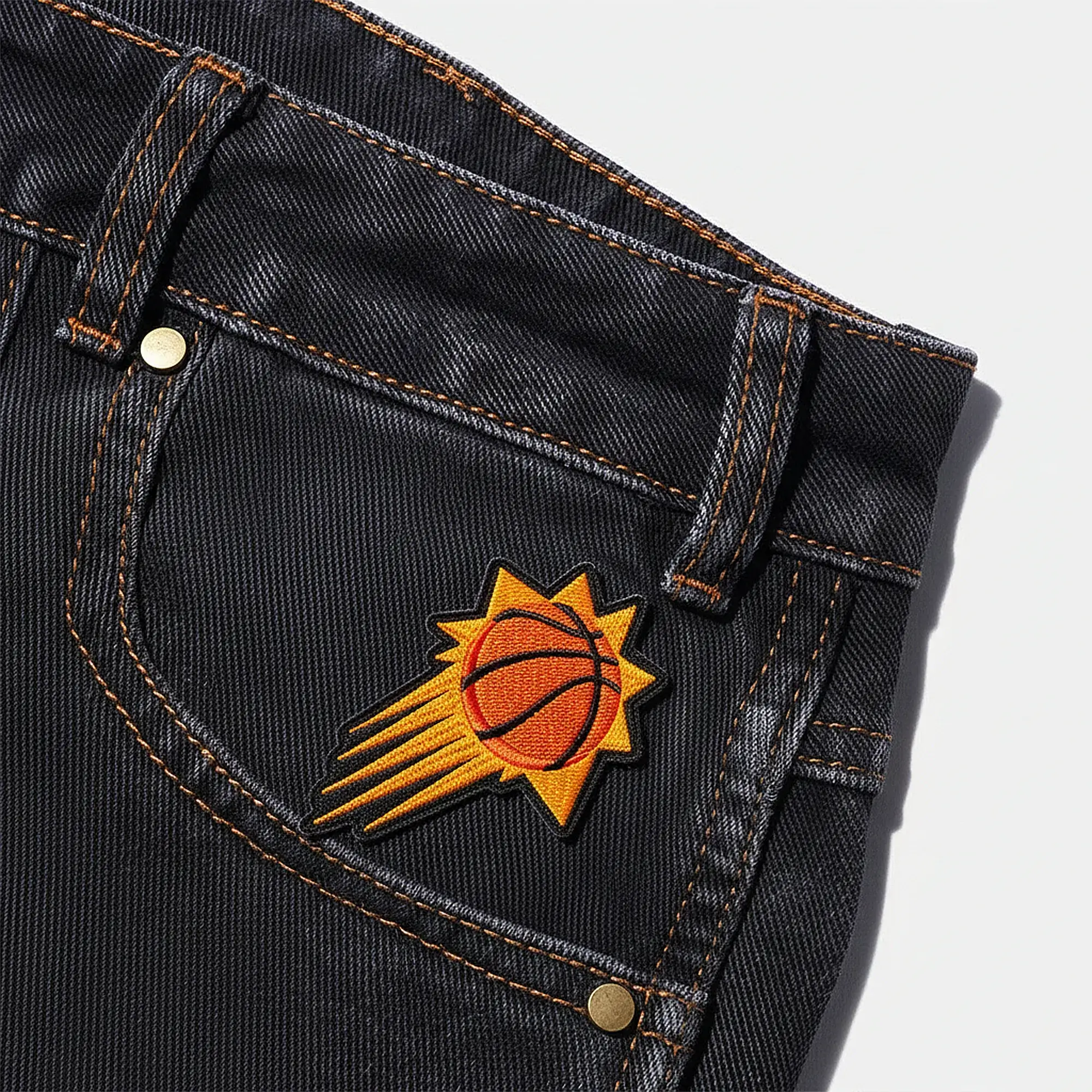 The fiery spirit of one of the exciting basketball teams can be seen in the Phoenix Suns symbol logo patch. The basketball design and its vibrant sunburst refer to motion, energy and the journey of the team to success on the court.